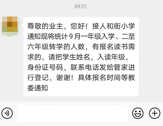 小学陆陆续续开始登记了,有小区业主收到物管的通知,让2020年9月新生和需转校学生的家长去物管登记。
