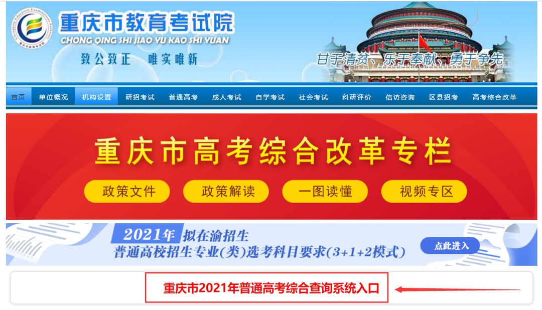 进入查询网站,选择“重庆市2021年普通高校招生考试综合查询系统入口”