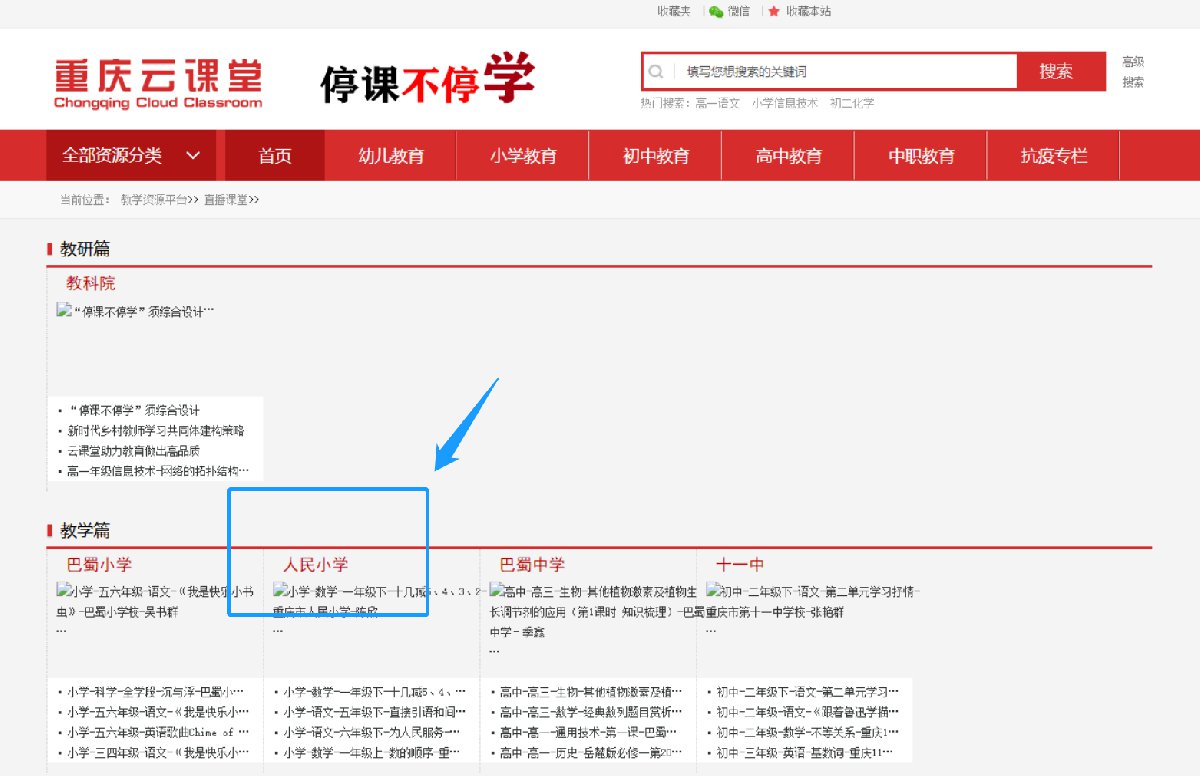 重庆云课堂人民小学公开课入口(重庆云课堂登录平台)