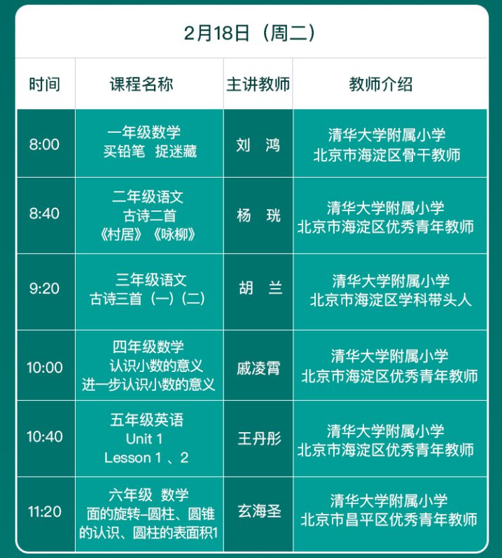 同上一堂课小学直播课程表