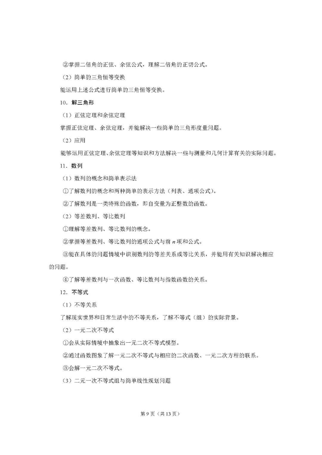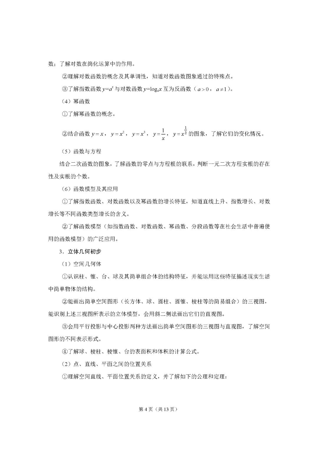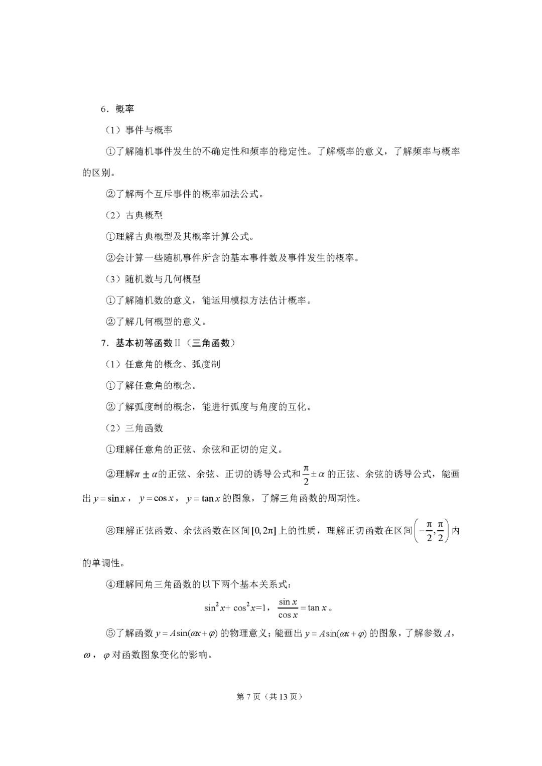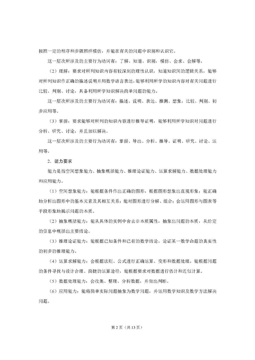 数学考试说明