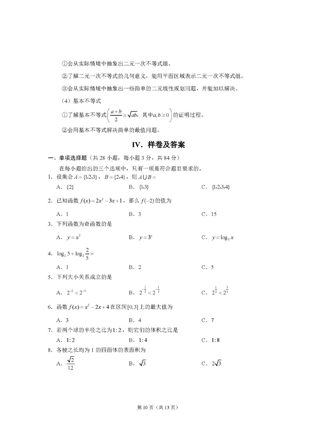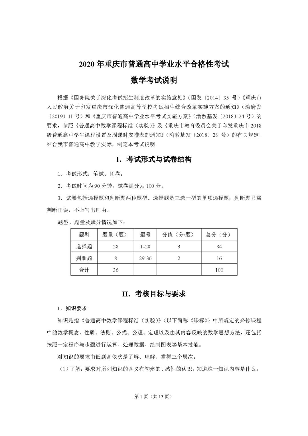 重庆高中学业水平考试数学考试说明 重庆高中学业水平考试成绩