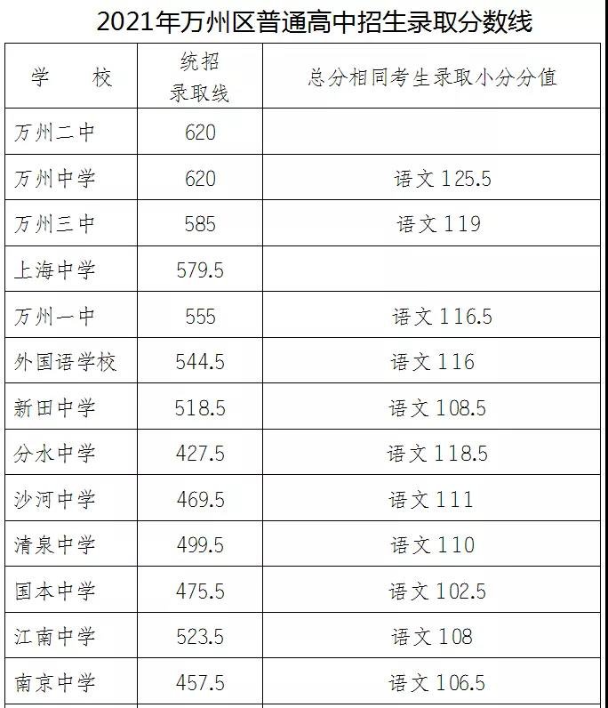一、2021万州分水中学中考分数线