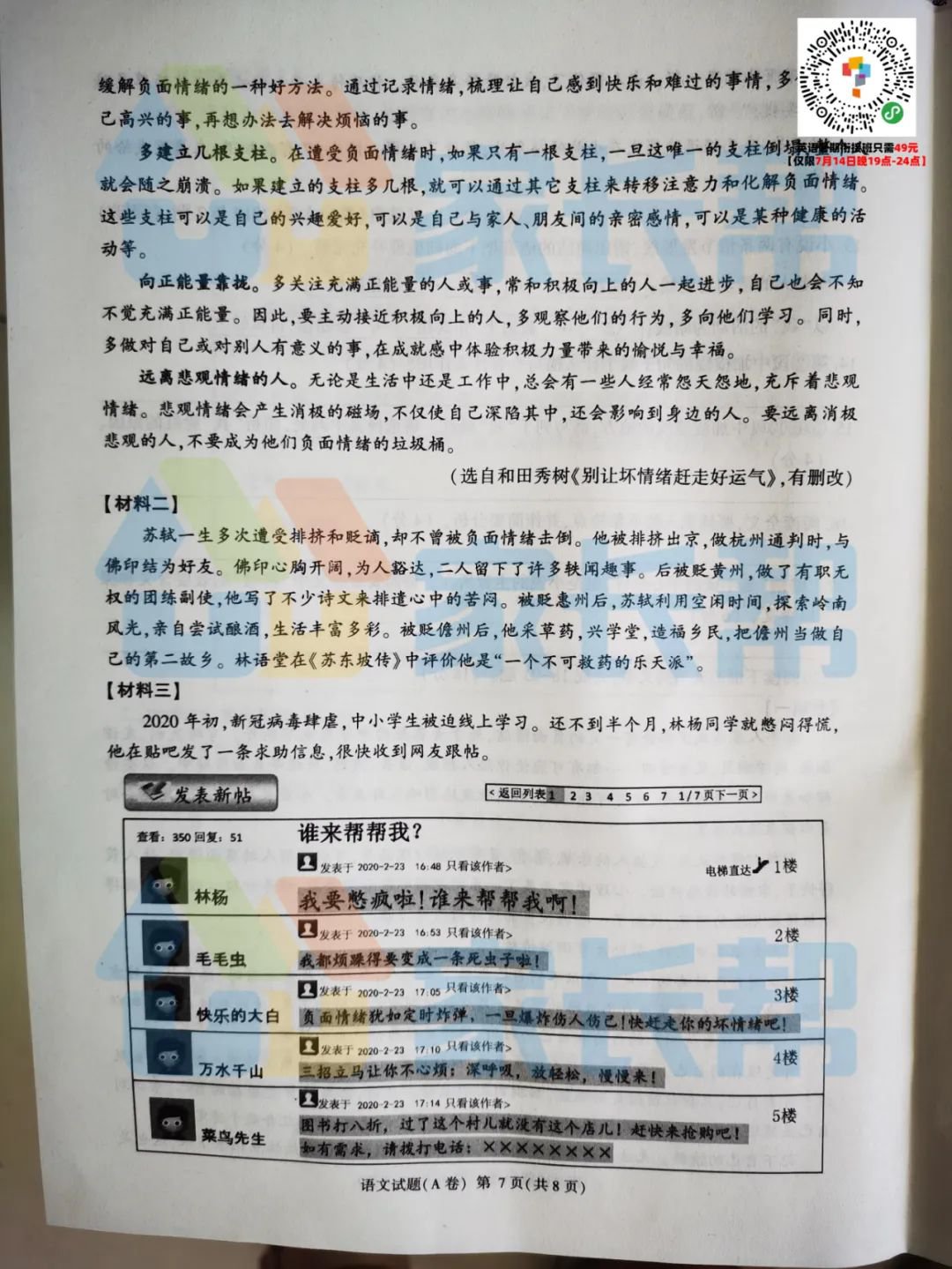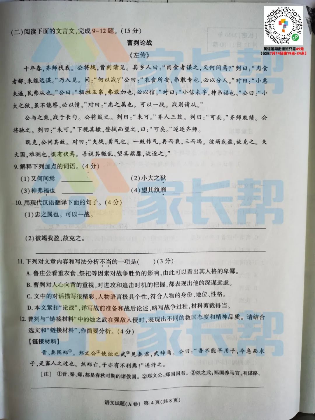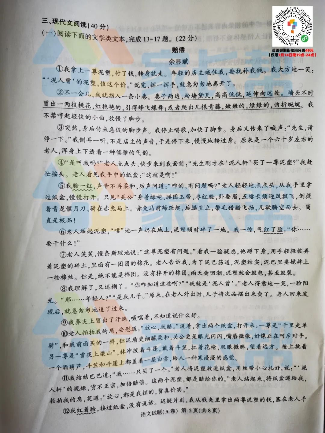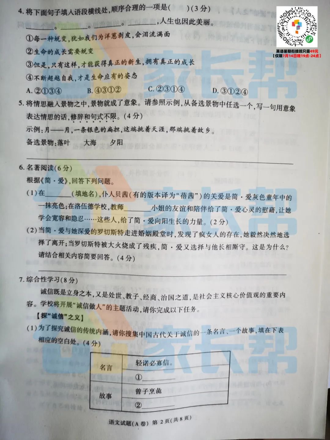 语文A卷试卷