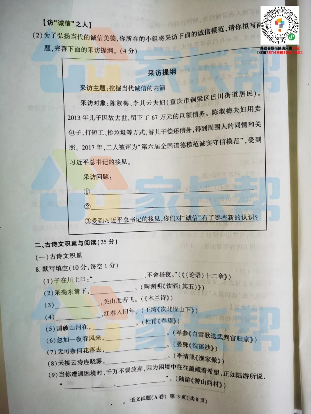 2020重庆中考b卷语文答案 2020重庆中考B卷语文