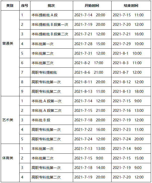 考生须仔细阅读《2021填报志愿指南》中各类别、各批次的征集志愿时间安排,还须及时关注志愿填报网站公布的征集志愿时间(如有变动,以网站最新公布的时间为准)。