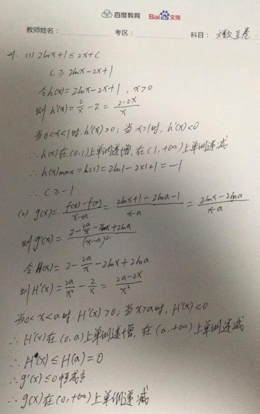2020重庆高考文科数学答案 2020重庆高考文科数学答案详解
