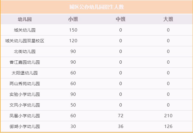 一、城区公办幼儿园招生人数