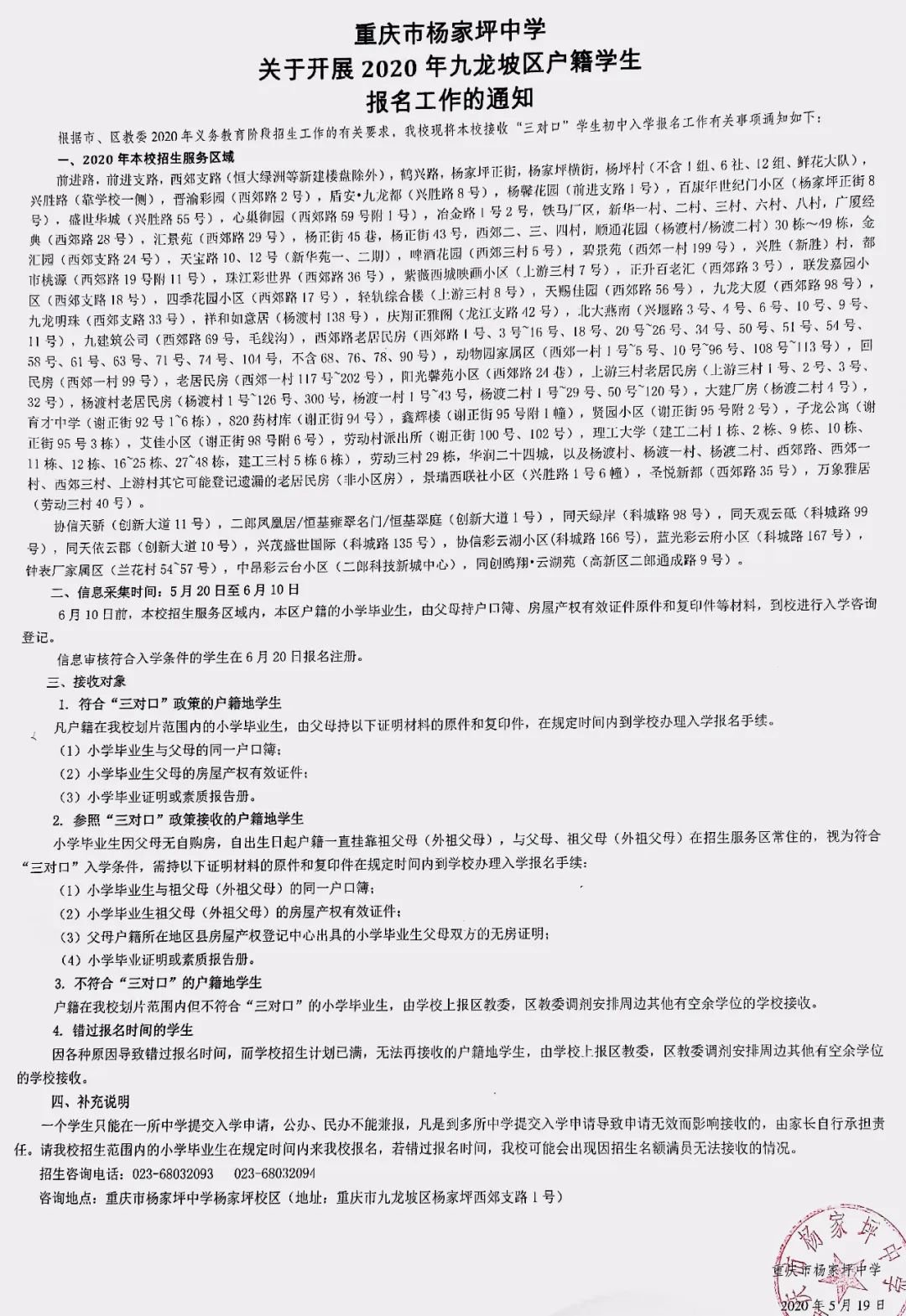 2020重庆市杨家坪中学划片范围公布 2020重庆市杨家坪中学划片范围公布图片