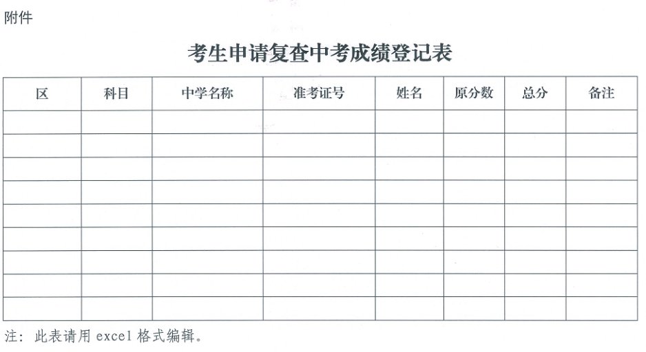 考生在获知中考成绩后如确有疑问,可向原就读学校(报名点)提出复查分数的书面申请,并填写《考生申请复查中考成绩登记表》。