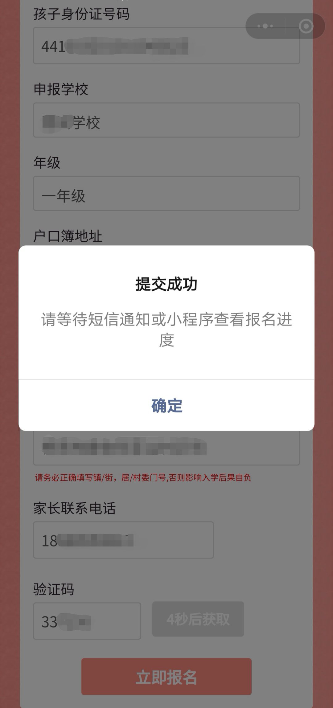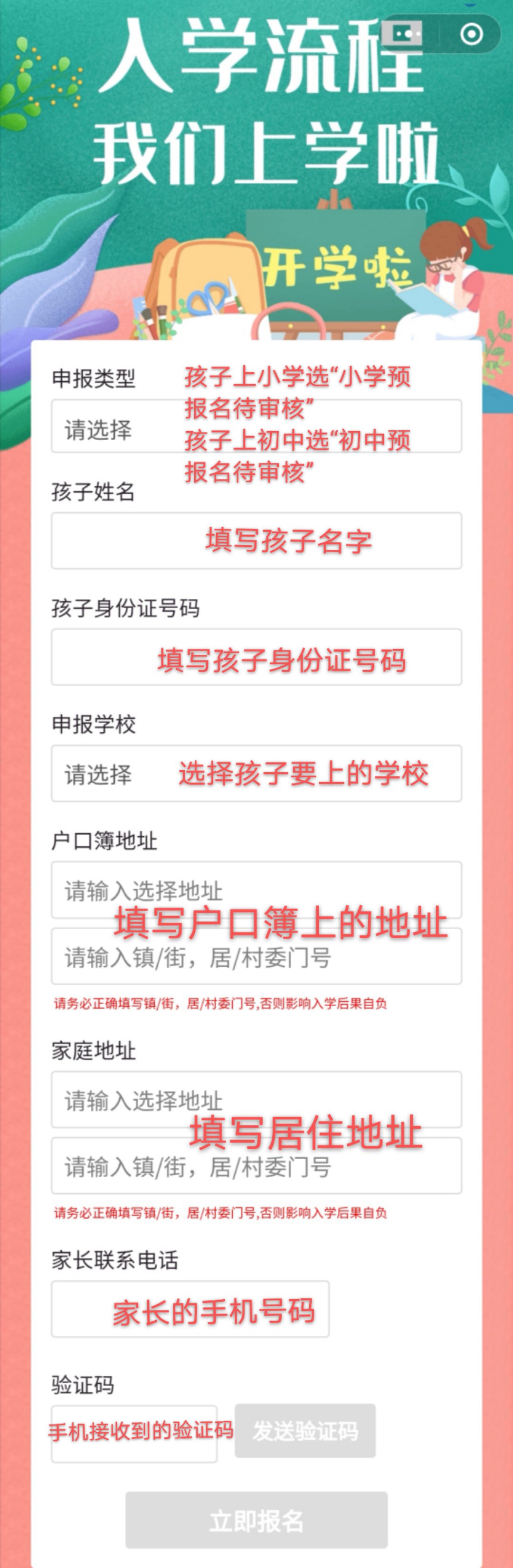 注意事项:如果家长录错了学校,请家长拿着小程序里的编号前往录错的学校进行注销。然后再进入小程序里重新进行预报名操作。