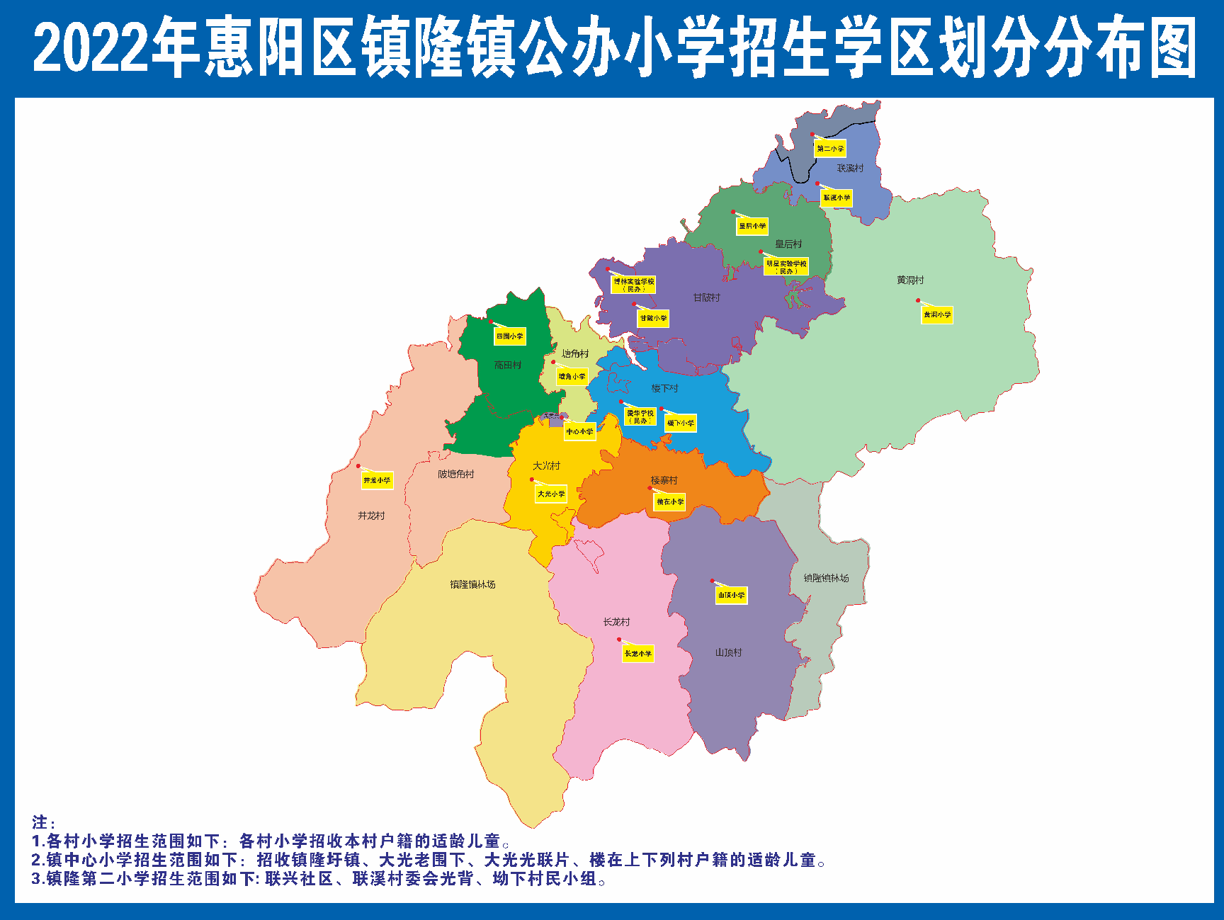 惠州镇隆镇公办小学2022学区划分 2020惠州市小学划片区情况