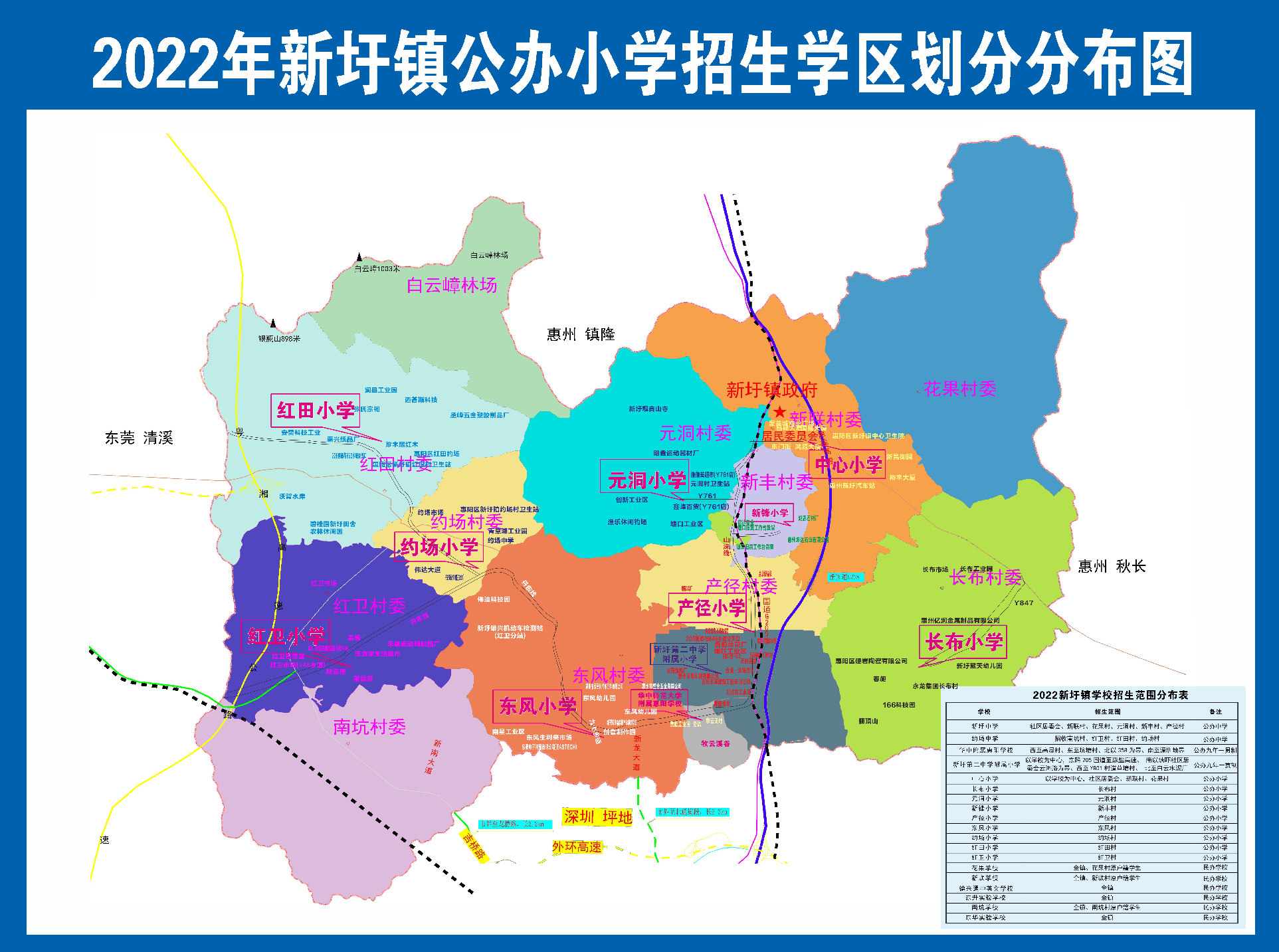 2022惠州惠阳新圩镇公办小学片区划分 惠阳区小学片区划分图表2020
