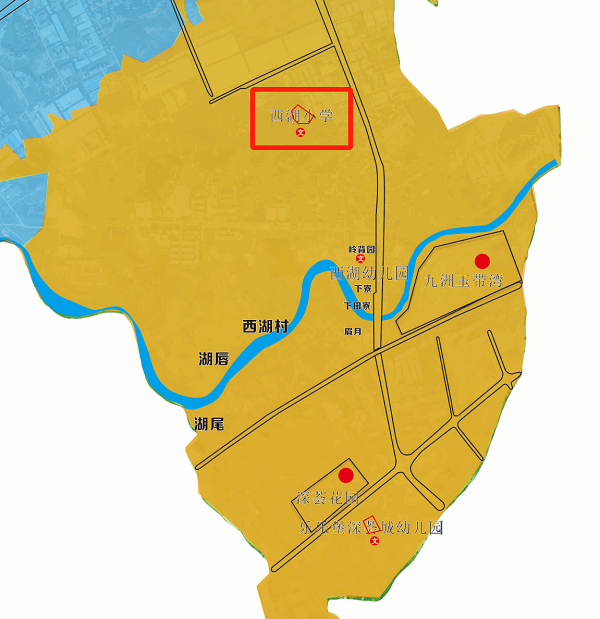 西湖小学:西湖村辖区、九州玉带湾、深荟花园新塘小学:新塘村辖区