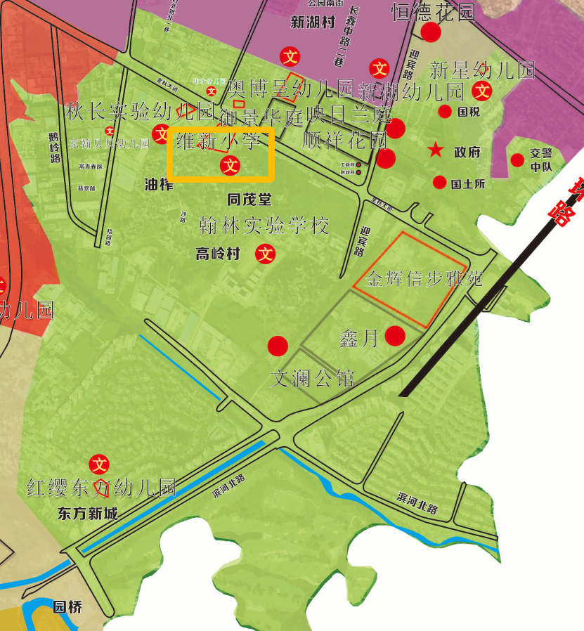 维新小学∶高岭村辖区(新湖村、塘房、油榨、老围、楼角、沙路、上围、御景华庭、映日兰庭、鑫月御园、文澜公馆、顺祥花园、金辉信步雅苑)