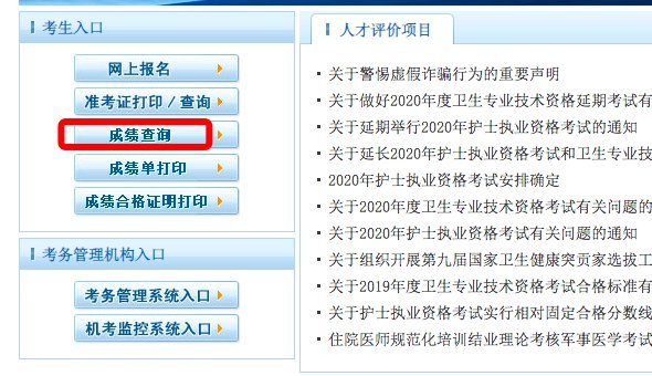 第二步:选择成绩查询入口,即可查询自己的考试成绩