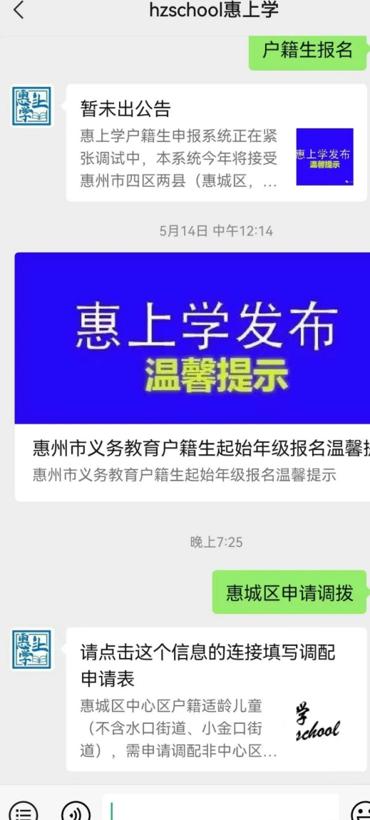 申请表领取方式:在惠上学公众号发送:惠城区申请调拨