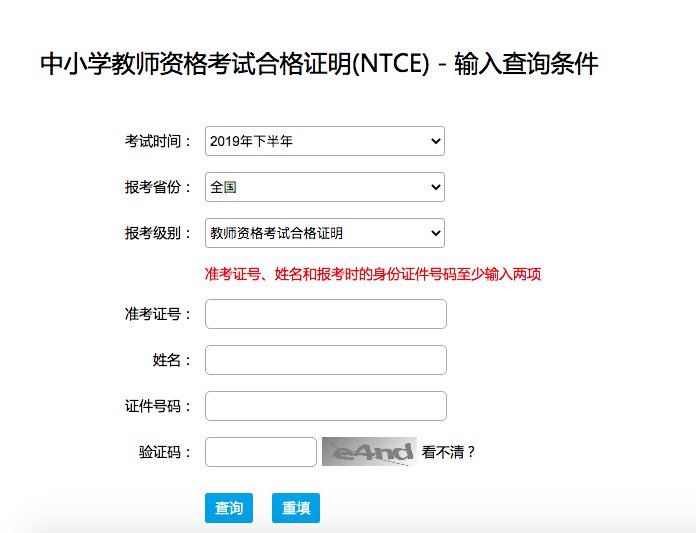 第三步:输入姓名、证件号码、准考证号等相关信息,即可查询到中小学教师证明