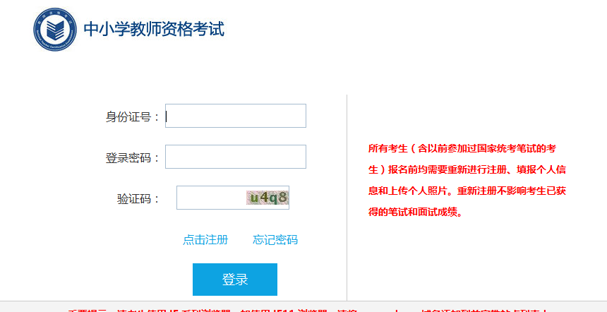 所有考生(含以前参加过国家统考笔试的考生)报名前均需要重新进行注册、填报个人信息和上传个人照片。重新注册不影响考生已获得的笔试和面试成绩。