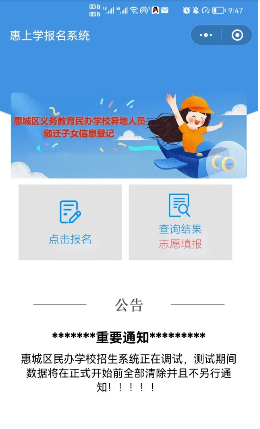 网上报名程序:“惠上学民办招生系统”微信小程序