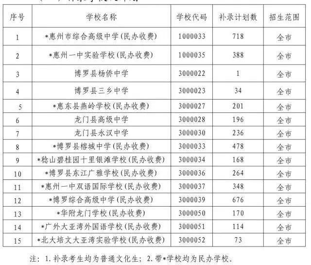 2020惠州中考补录学校名单及计划 惠州市2020年中考录取
