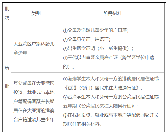 第一批:大亚湾区户籍[2022年6月10日(含)前入户]及符合第一批招生对象的适龄儿童少年。