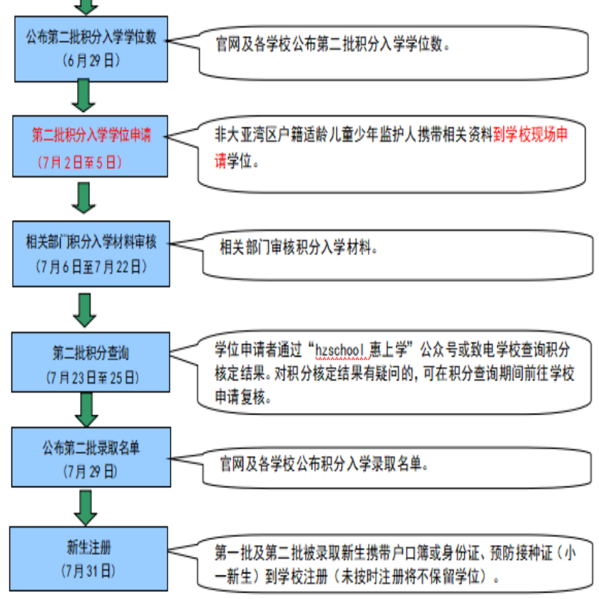 第二批:非大亚湾区户籍适龄儿童少年。非大亚湾区户籍适龄儿童少年通过积分入学办法(见附件1)申请学位。