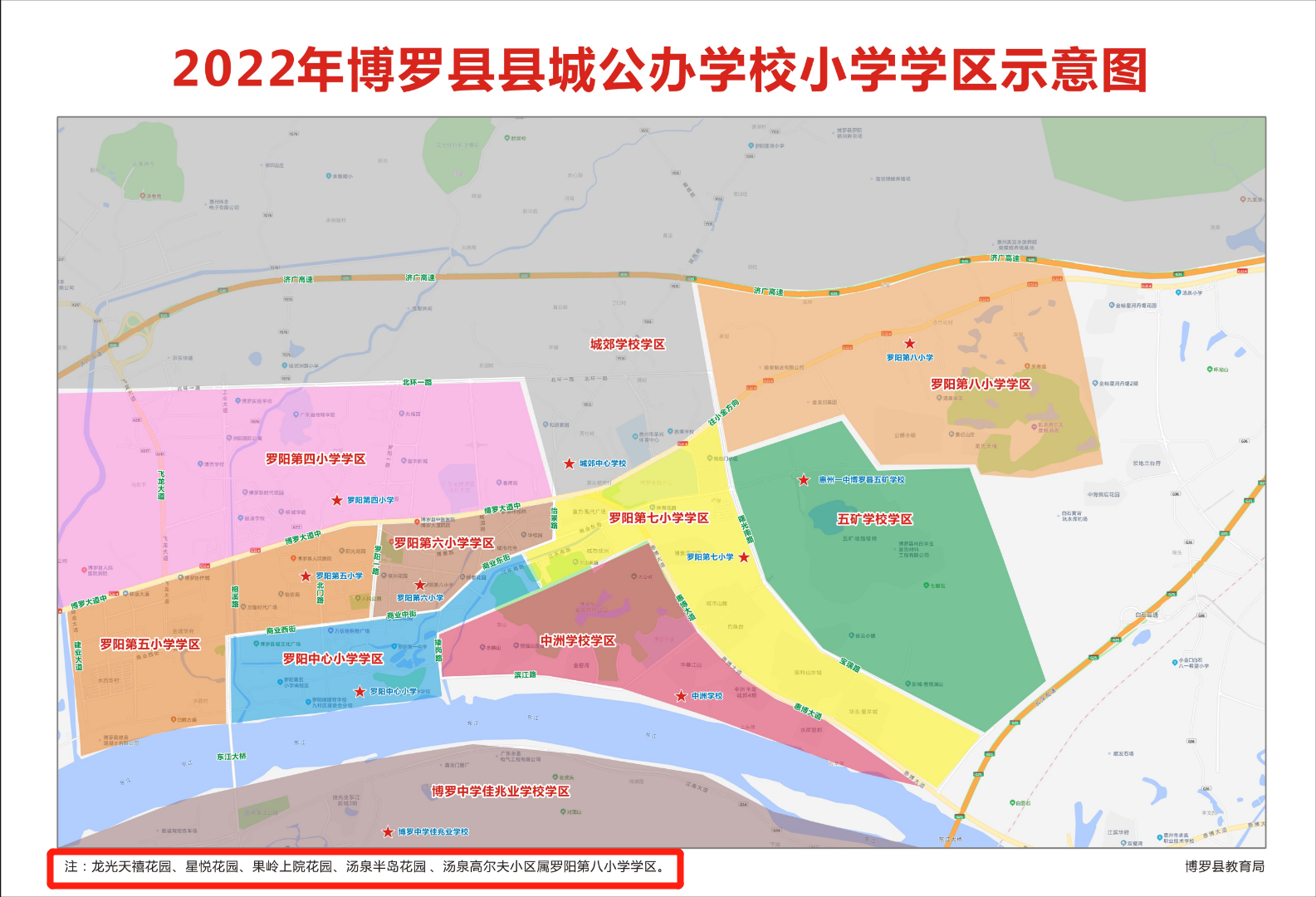博罗县城初中及小学学区示意图 博罗小学学区划分图
