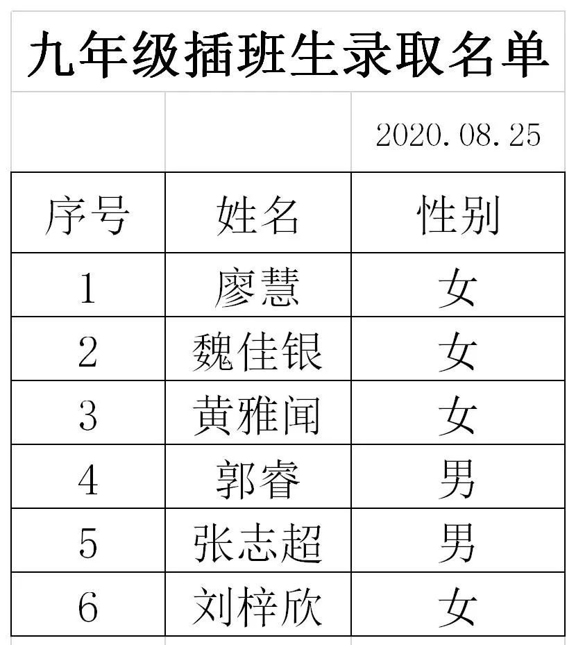西区实验学校于2020年8月23日进行2-6年级秋季插班生现场材料审核,现将拟录取名单公示如下:
