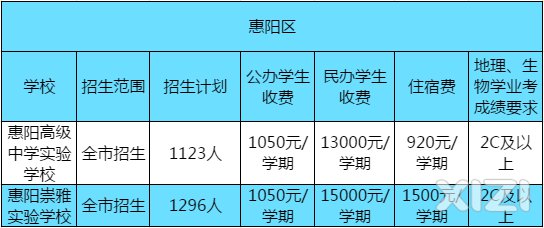 2020年惠州15所民办学校向全市招收高一民办收费生计划总数为6816人,民办学费每学期在13000元至60000元不等;住宿费每学期在920元至2850元不等。