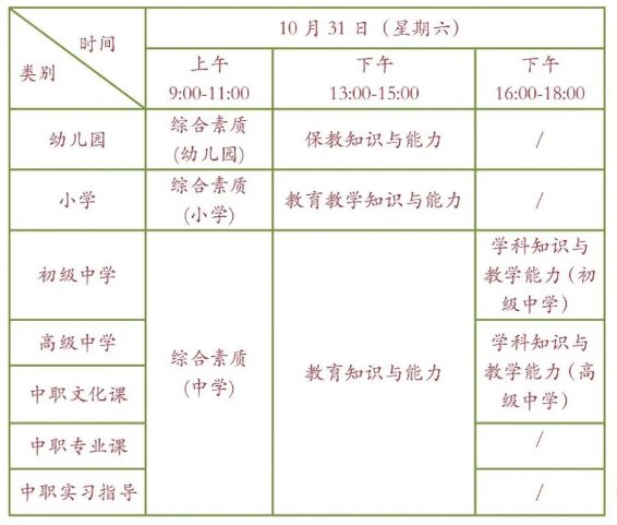 2020下半年江门教资笔试考试科目一览 教资江门考点