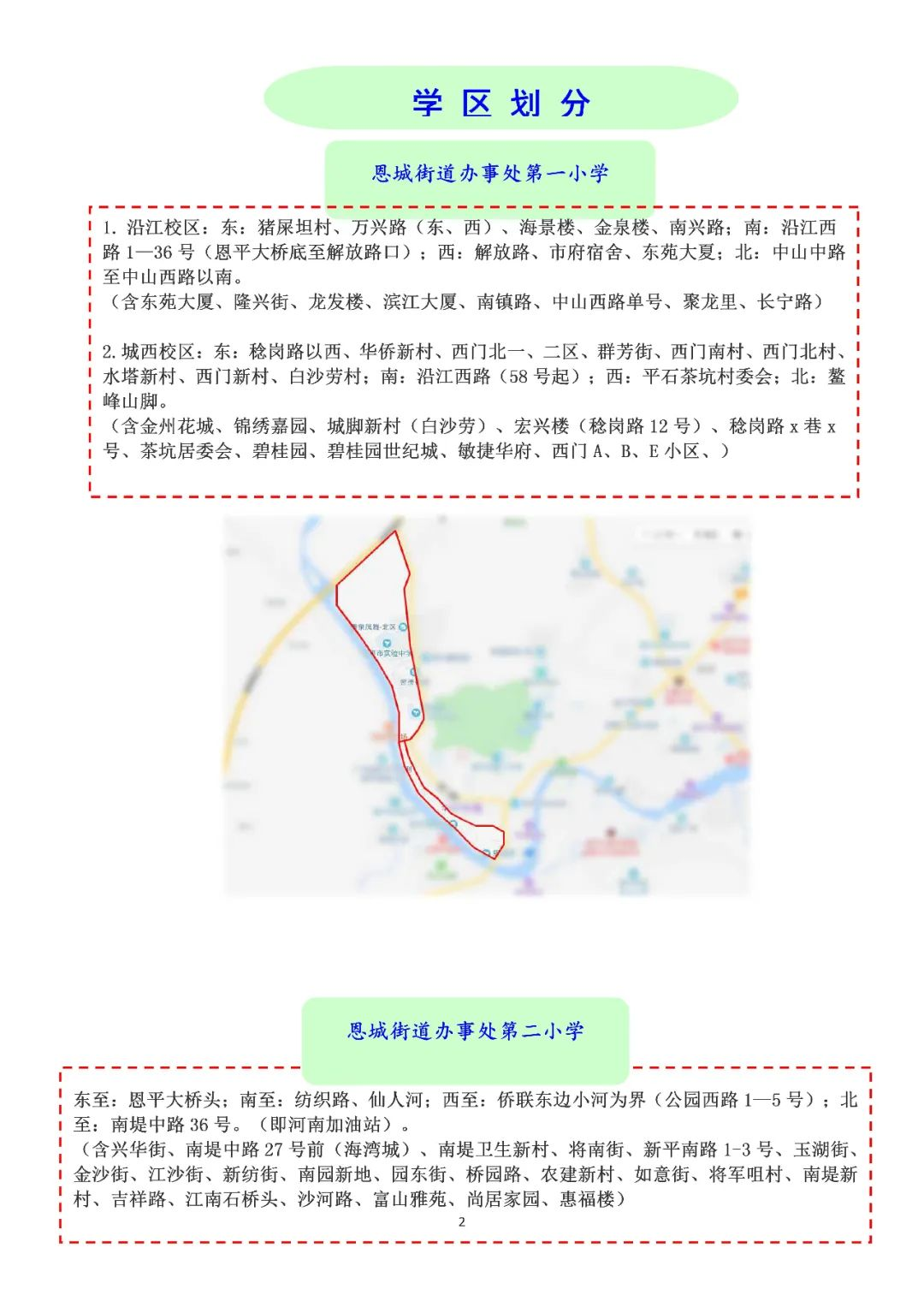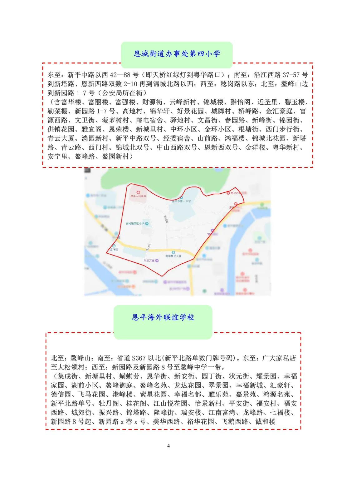 (二)恩城城郊小学:恩城街道办事处附城小学、恩城街道办事处平富岗小学、恩城街道办事处联合小学、恩城街道办事处中南小学、恩城街道办事处石栏小学、恩平市江南学校、恩城街道办事处锦岗小学。