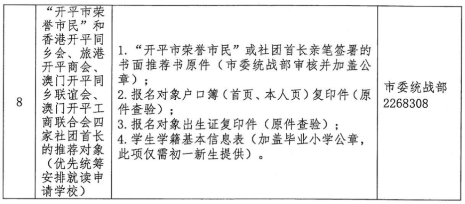 (一)义务教育阶段学校招生工作在开平市招生领导小组的领导下,按照“属地管理、划片、就近、免试"入学的基本原则,由市教育局及各中心学校根据生源情况、学校分布、招生规模、所在社区、交通状况等因素合理划分各学校招生区域。中心学校根据各学校的招生区域,按照“人户一致,就近入学”“人户分离,统筹安排”的原则进行学位安排。民办学校在核定招生范围内组织报名工作,录取新生,不得进行计划外招生。