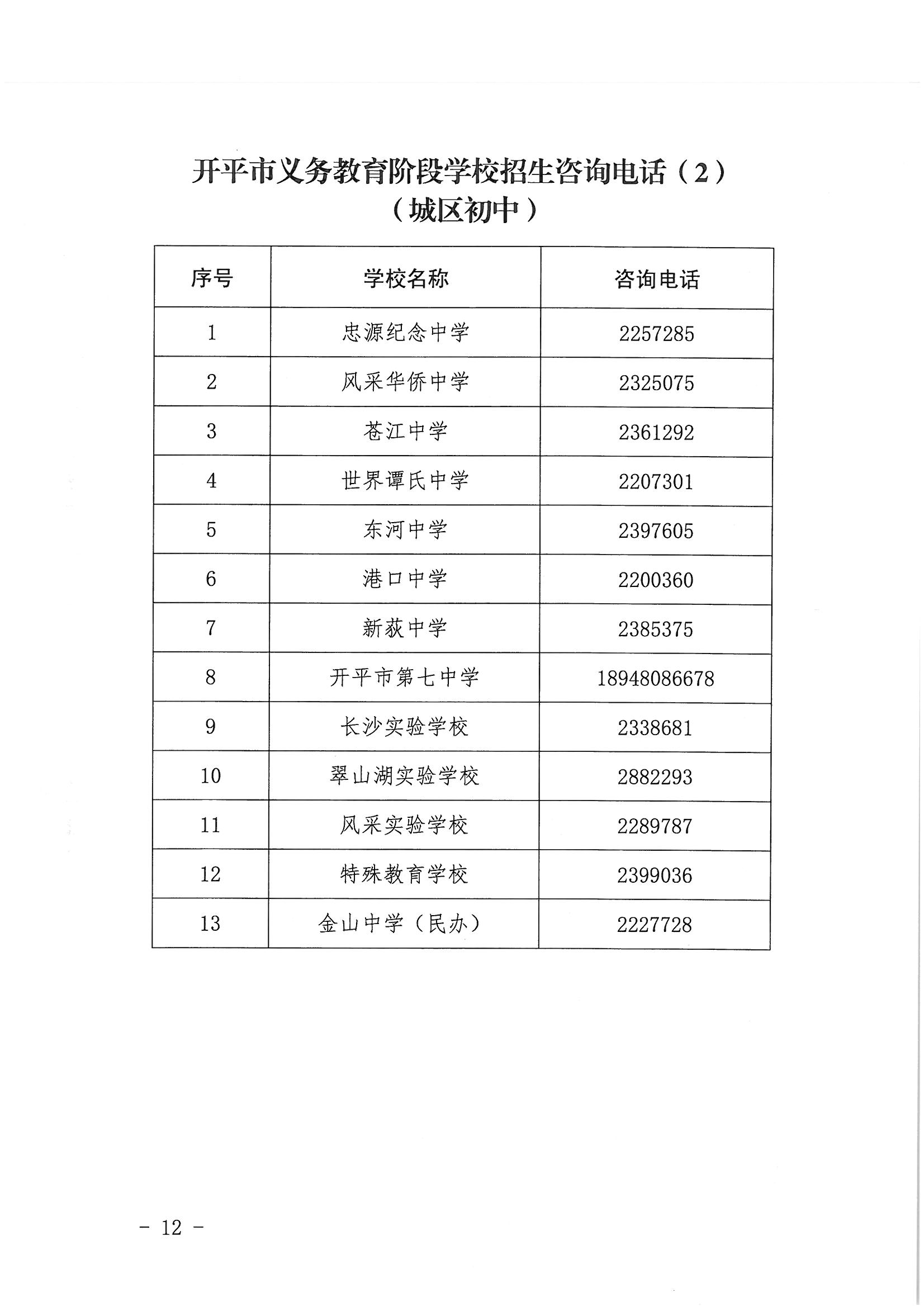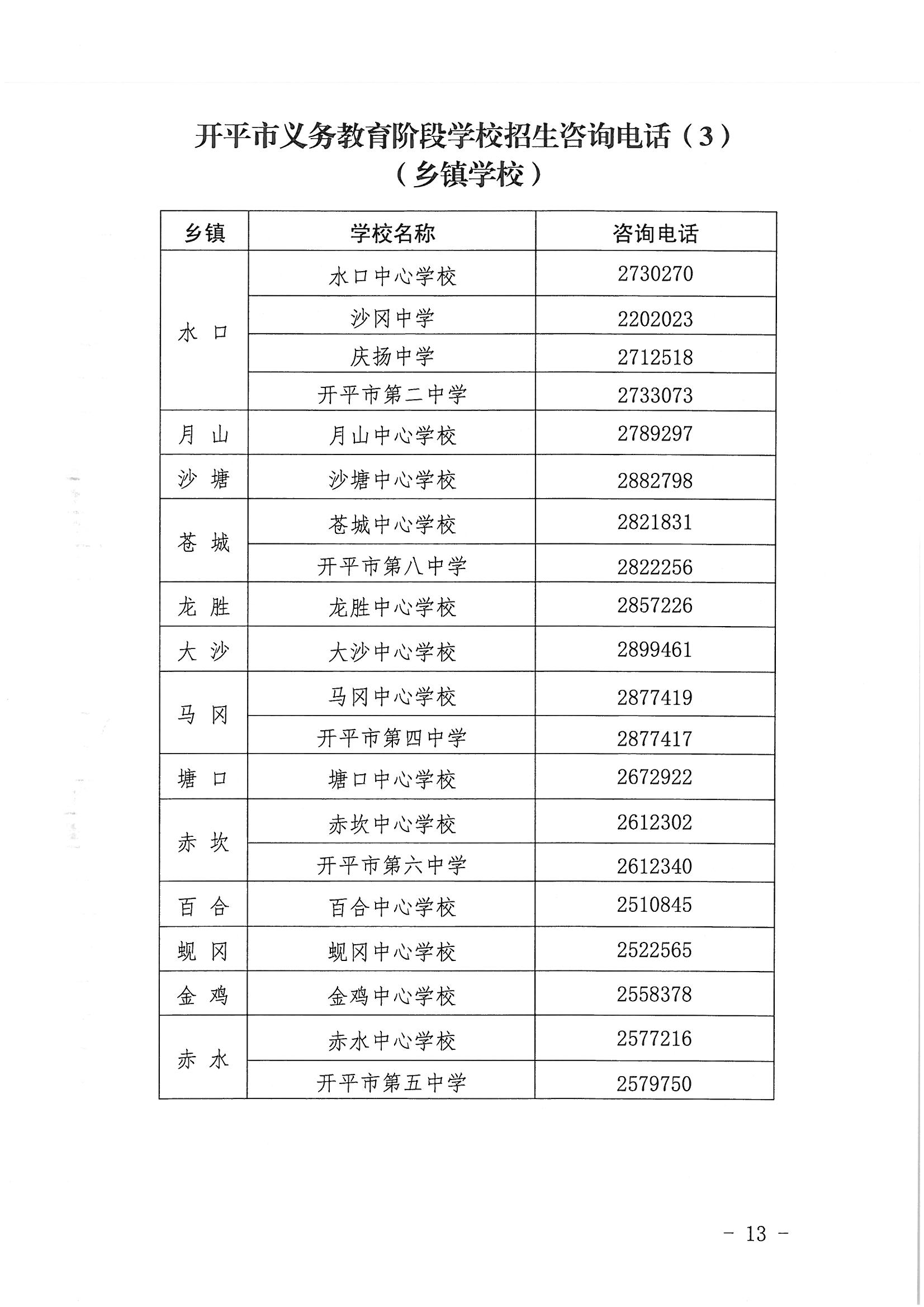 1.开平市义务教育阶段学校招生咨询电话