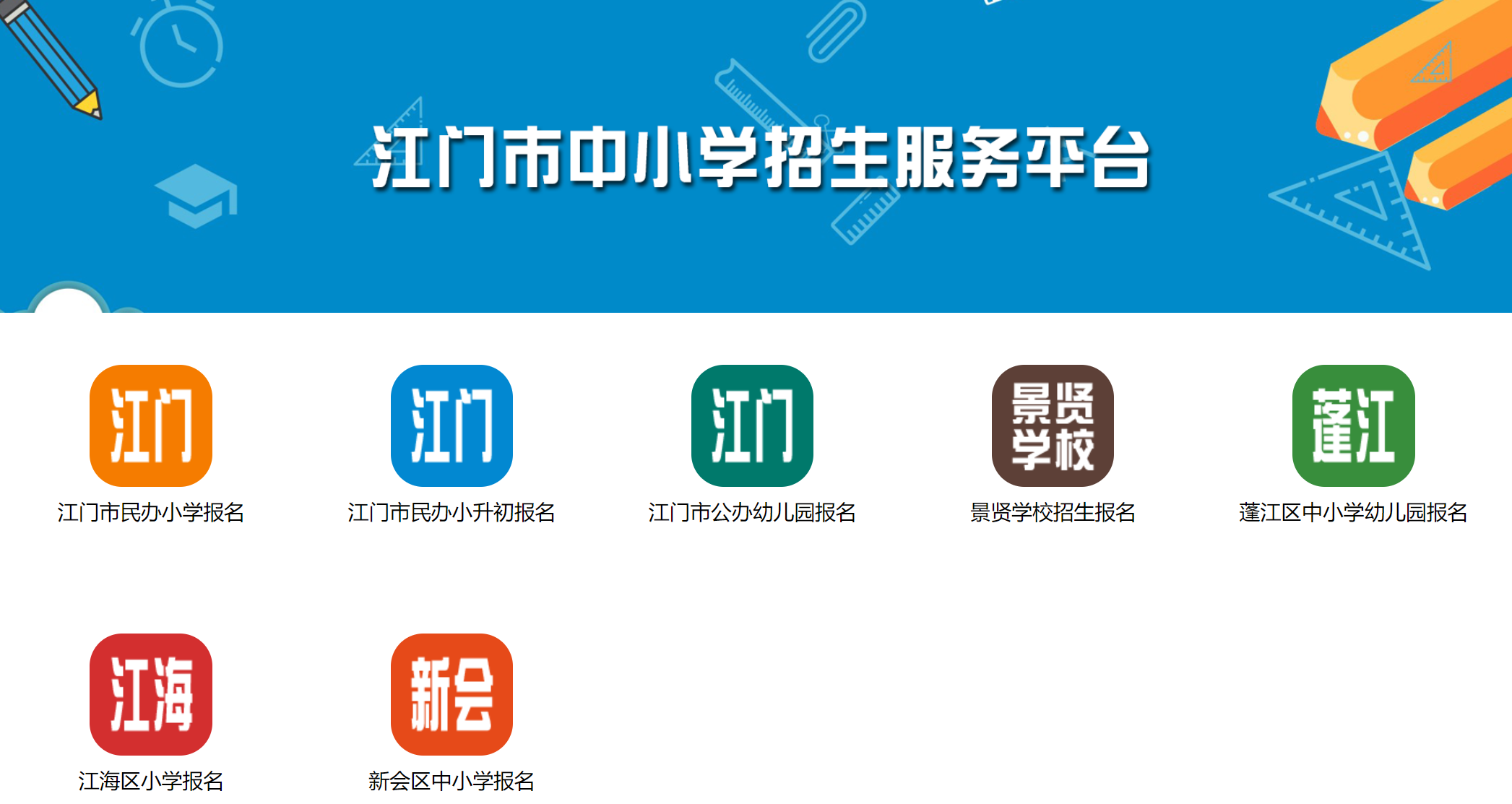 1.市直、蓬江区、江海区、新会区民办义务教育学校在4月18日-5月13日进行招生报名工作。报名系统在4月18日上午8:30正式开通。之前测试期间个别家长进入系统填报的信息将会清空,请家长留意重新填报。