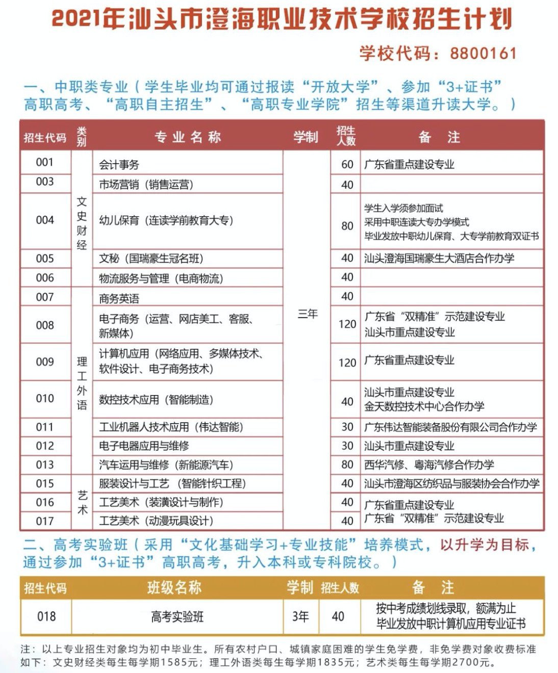 2021汕头市澄海职业技术学校招生计划(广东汕头澄海职业技术学校)