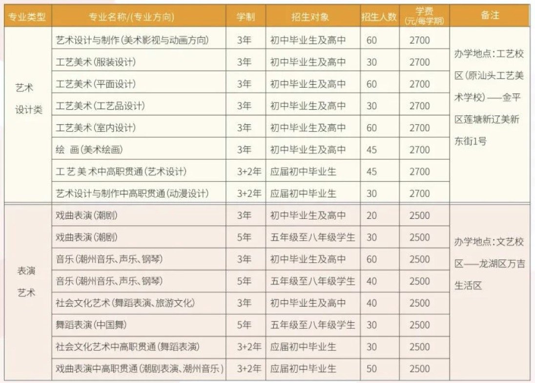 汕头文化艺术学校招生计划
