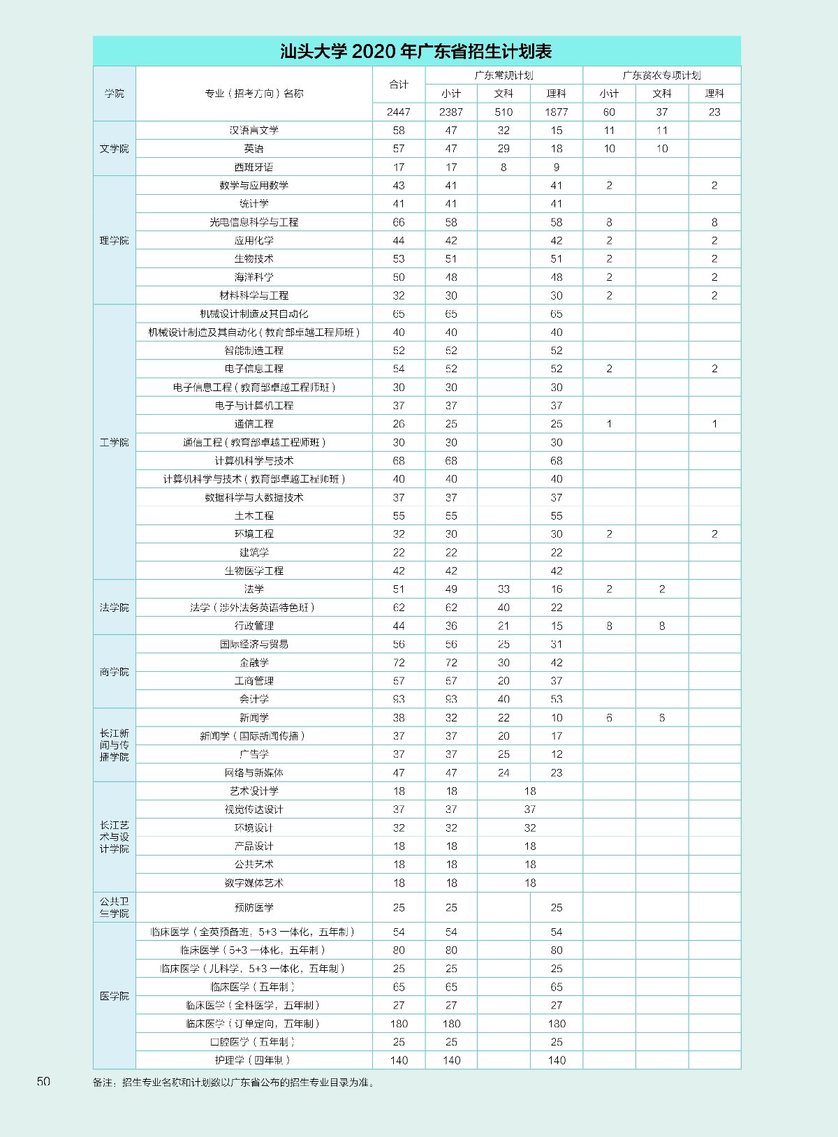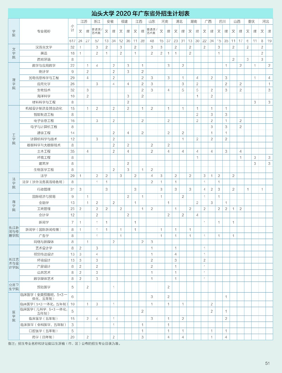 汕头大学2020年招生计划(汕头大学2020年招生分数)