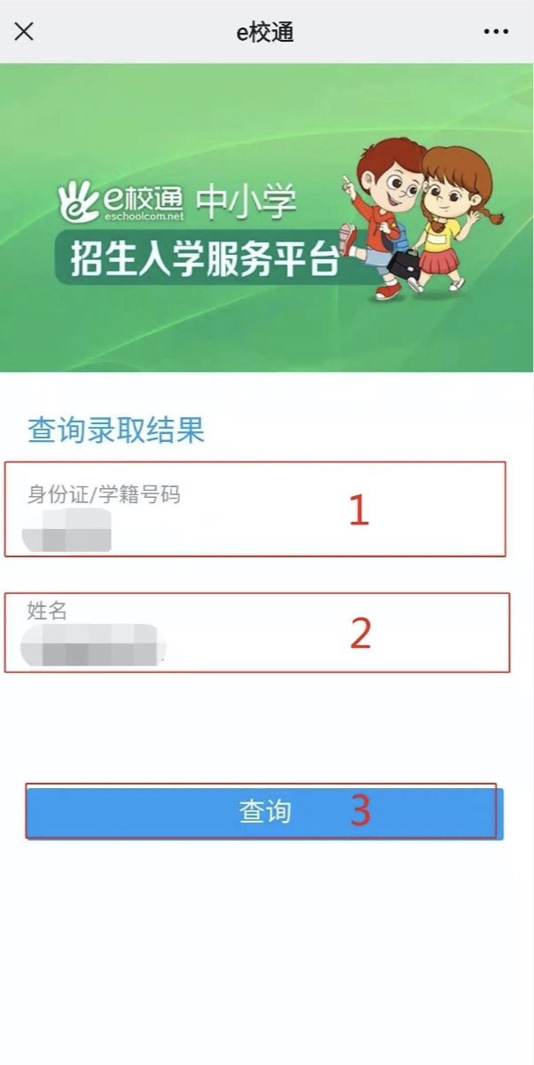 在【南方e校通】公众号点击【招生|服务】-【招生查询】,输入学生身份证/学籍号码及姓名,点击【查询】。