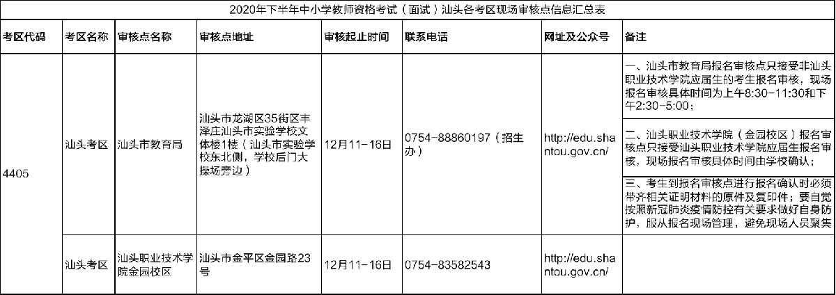 2020下半年汕头教师资格面试报名官网 汕头教师资格证面试报名时间