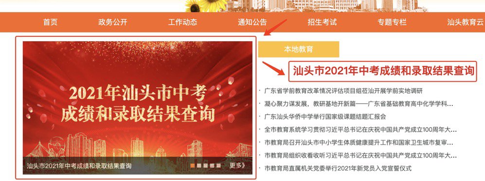 届时,考生可登录汕头市政府门户网站汕头市教育局频道、汕头市教育局微信公众号和汕头橄榄台、汕头移动微信公众号查询本人考试成绩及录取结果。