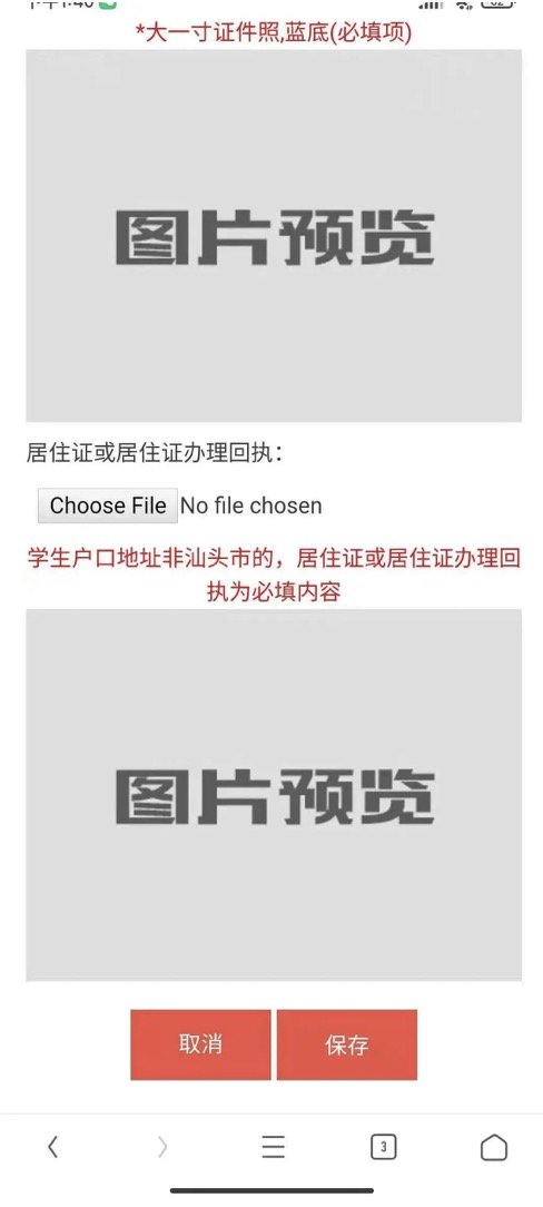 上传学生近期蓝底大一寸电子证件照,进城务工人员上传居住证。