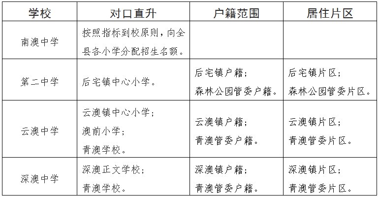 南澳县各小学毕业生,根据毕业小学所对应划片招生、对口直升的初中学校填报志愿。