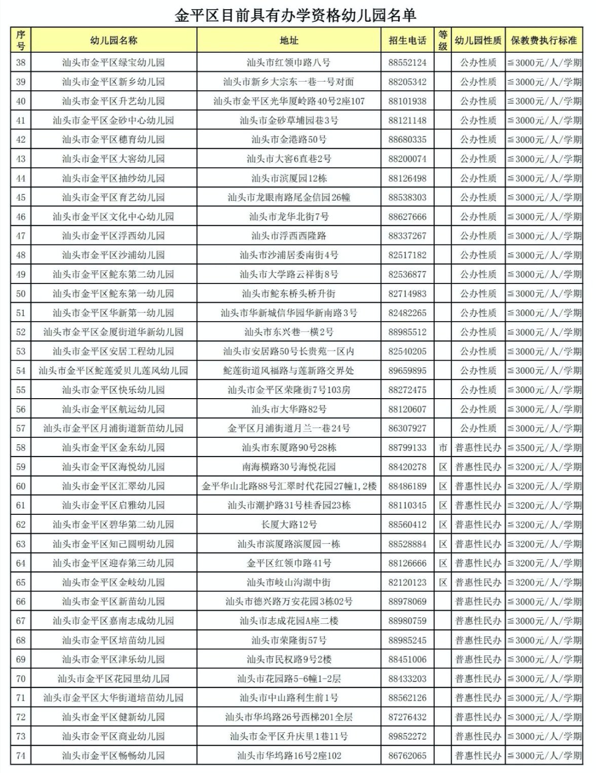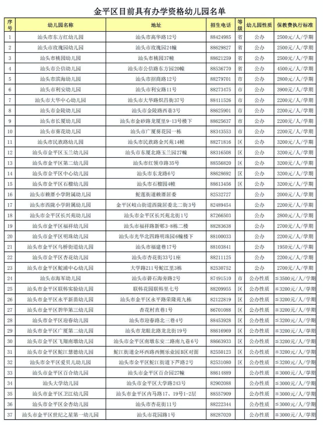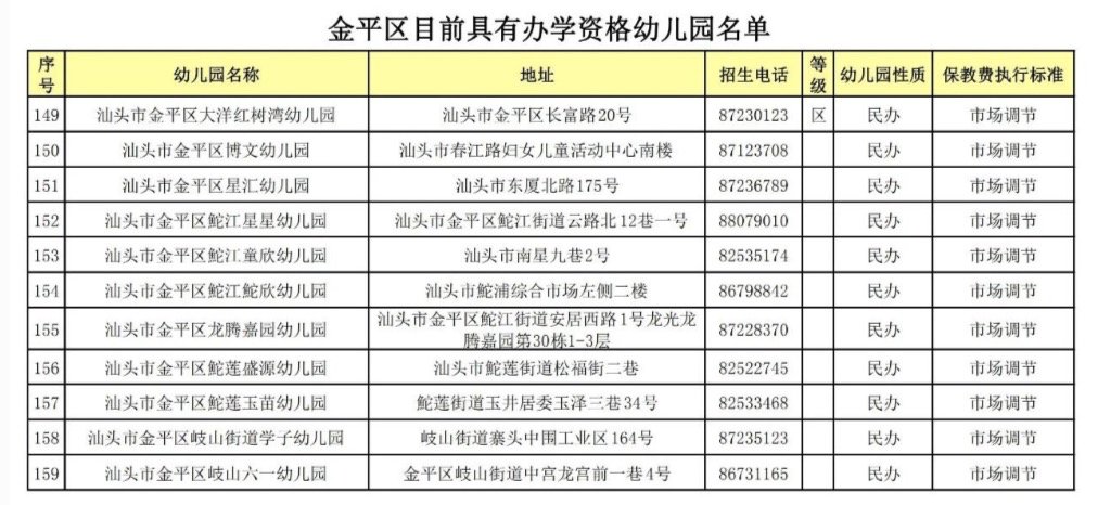 2021汕头金平区具有办学资质的幼儿园名单