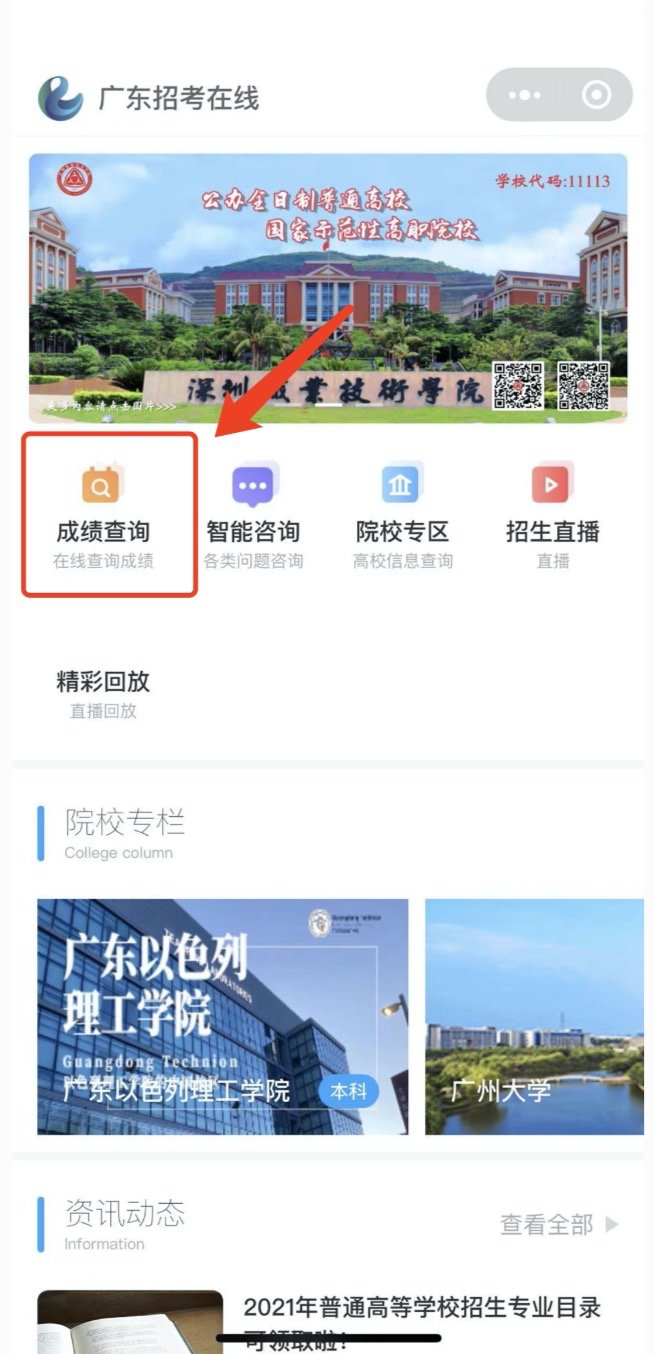 6月25日11:45起,考生在微信搜索并进入“广东招考在线”小程序,点击“成绩查询”,选择考生对应的考试类别,通过考生号和出生日期即可查询考试成绩。也可通过百度App搜索“广东省教育考试院”,打开“广东省教育考试院—智能小程序”进入广东省教育考试院官方发布平台,点击“考试成绩”,输入考生号和密码登录查询成绩。