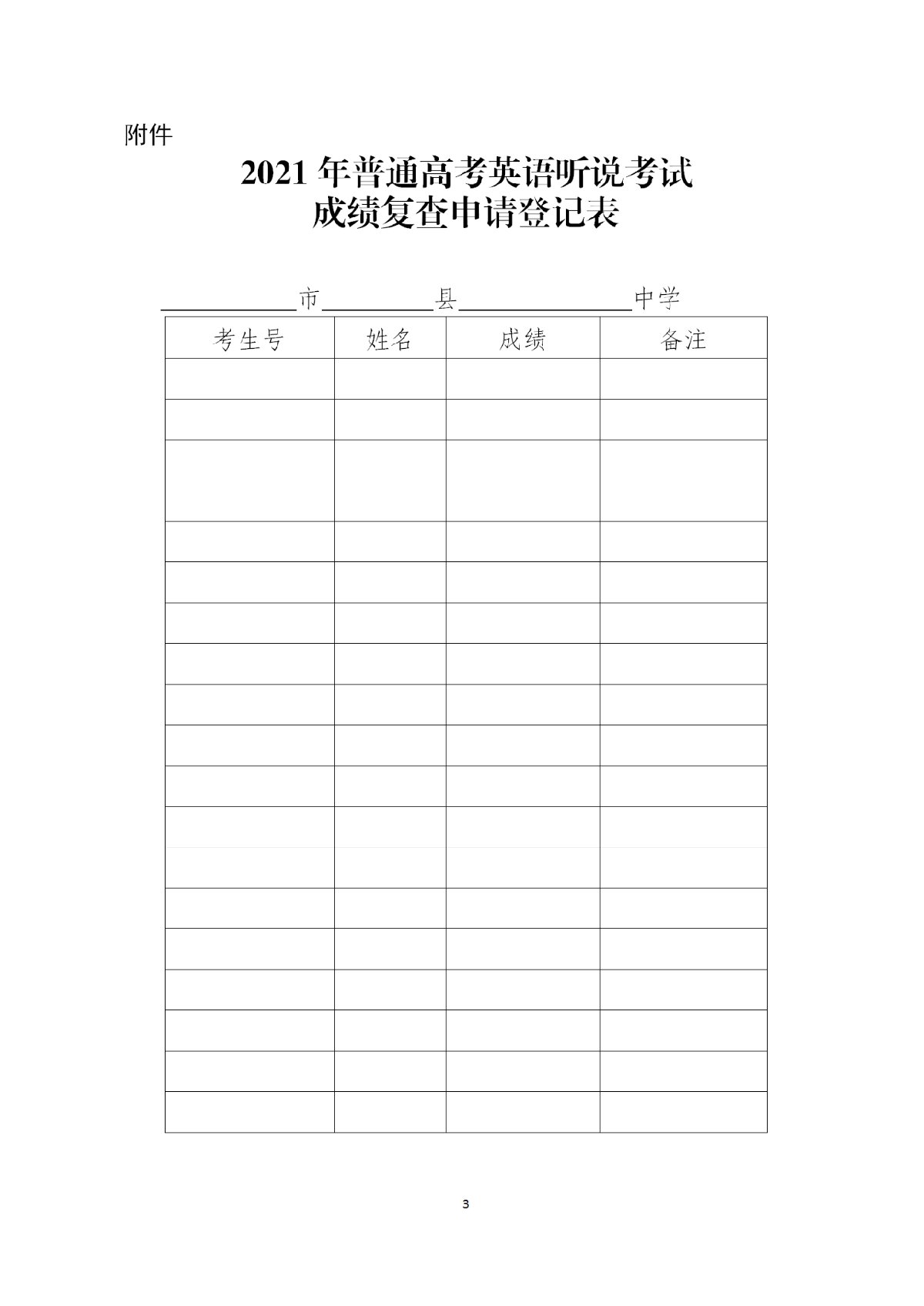 附件:2021年普通高考英语听说考试成绩复查申请登记表