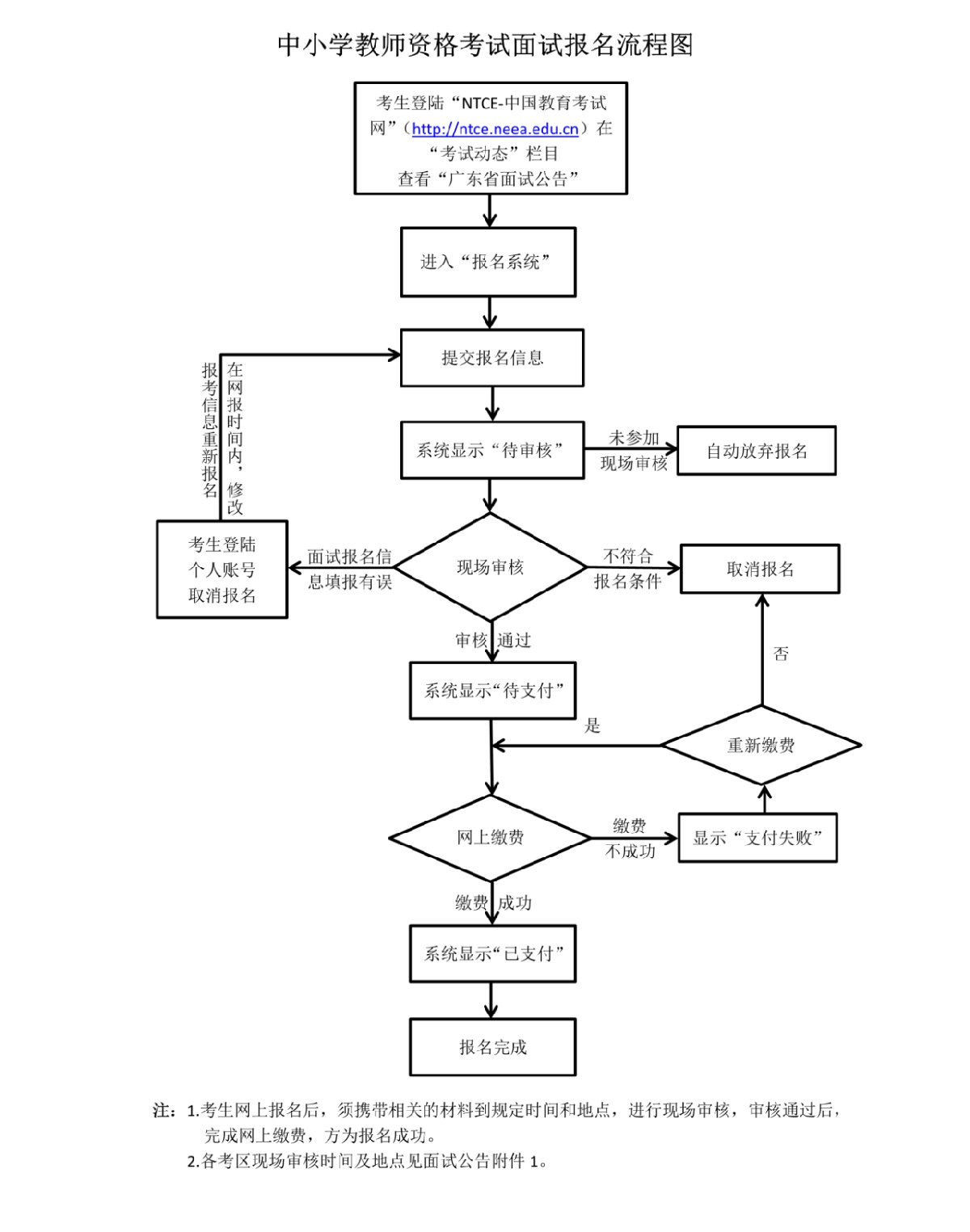 符合面试报考条件的考生在报名时间内,登录“NTCE-中国教育考试网”按照栏目指引进行网上报名,准确填写面试类别、面试科目和面试考区等信息。