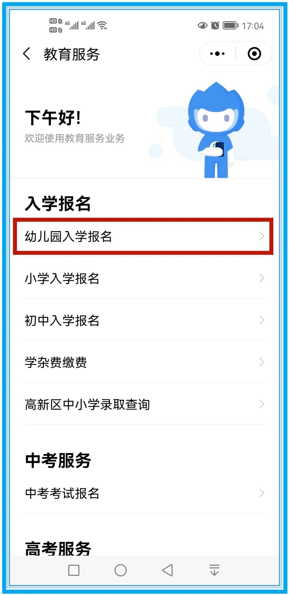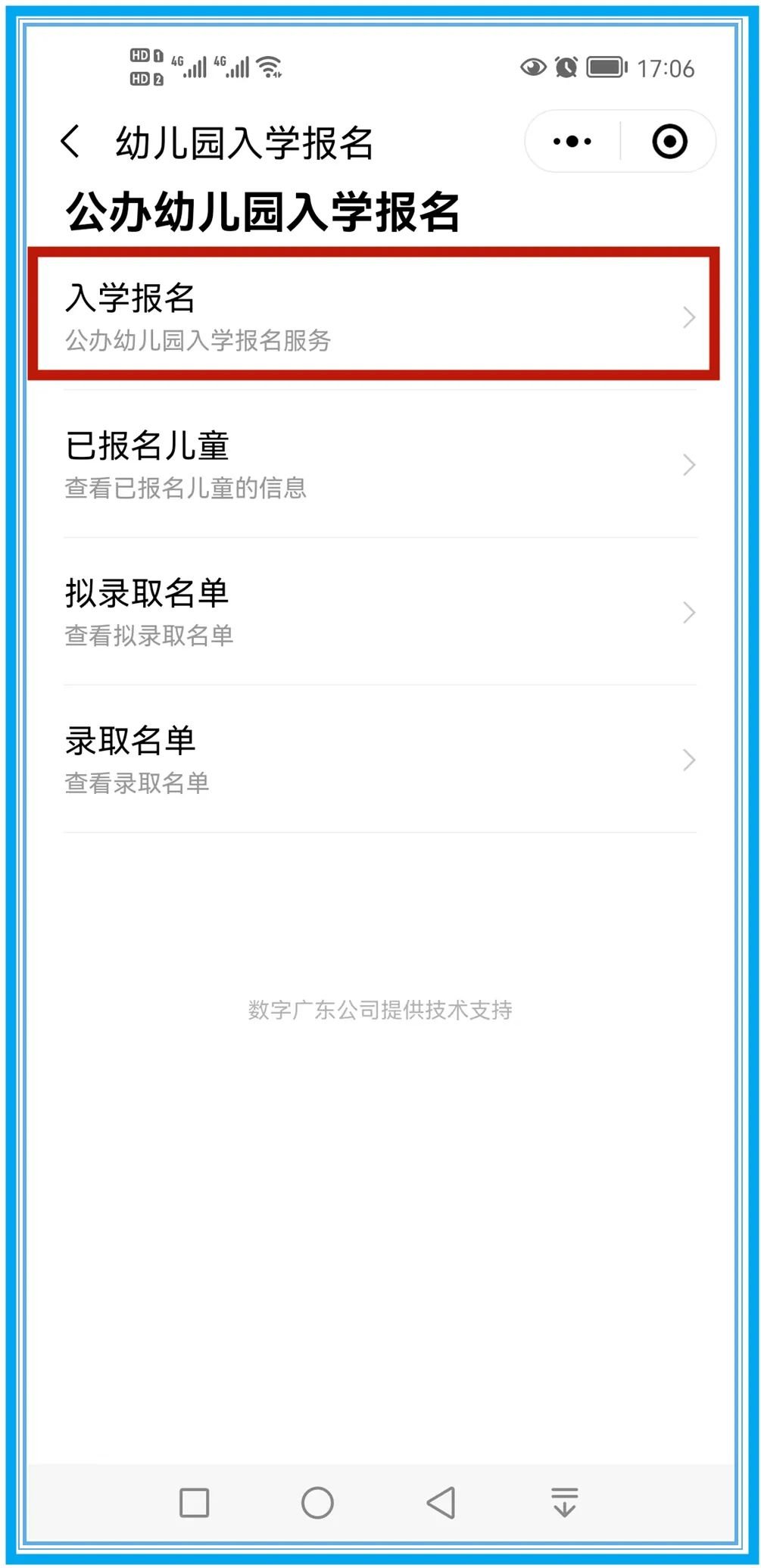 第四步:选择“公办幼儿园入学报名”