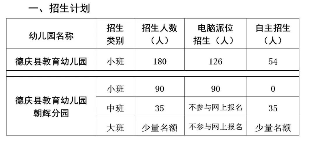 注:德庆县教育幼儿园朝辉分园中班招生对象为:2017年9月1日—2018年8月31日期间出生的幼儿;大班招生对象为:2016年9月1日—2017年8月31日期间出生的幼儿。