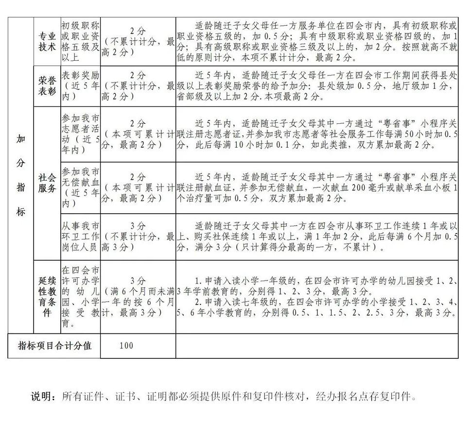 积分入学指标及分值计算详见《四会市适龄随迁子女申请入读义务教育阶段公办学校起始年级积分指标及分值》
